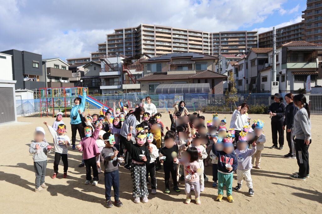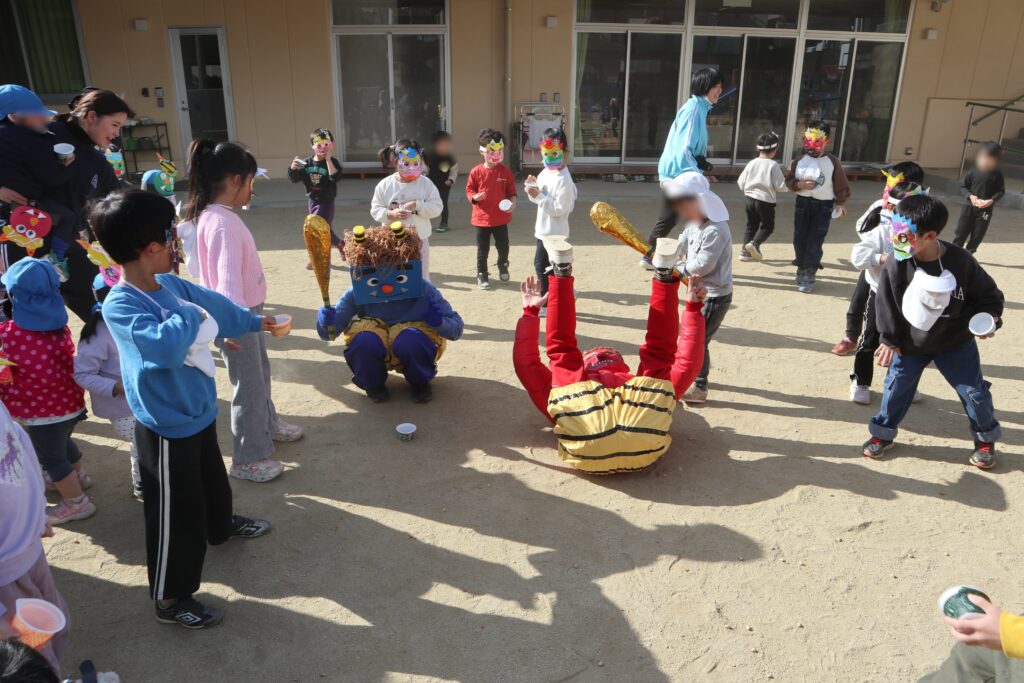 びっくりして泣いちゃう子もいましたが、「おにはそと―!」っと勇敢に立ち向かう子ども達も多く一生懸命に豆をまいていました。